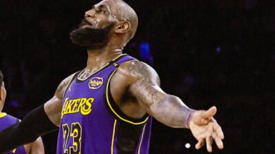 O narrador Rômulo Mendonça foi à loucura com a cesta de três pontos de LeBron James na vitória do Los Angeles Lakers sobre o Golden State Warriors por 120 a 112, nessa quinta-feira (6/2), pela NBA. O veterano acertou o arremesso do meio da quadra e causou um comentário inusitado do irreverente locutor na transmissão pela Prime Video Sport. Veja abaixo!