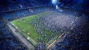 Campeão europeu volta à elite, e torcida invade o campo para festejar