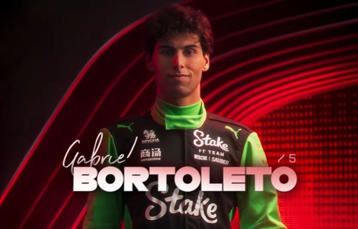 Gabriel Bortoleto, um dos cinco jovens estreantes na F1, é o primeiro piloto a aparecer na vinheta. Com o macacão preto e verde da Sauber, o automobilista brasileiro surge no vídeo de forma discreta, sem nenhuma pose específica, mas com um promissor sorriso no rosto.