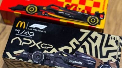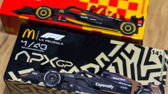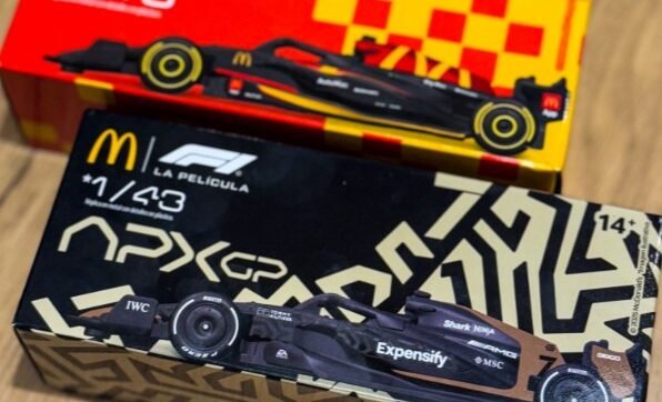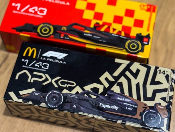 Na semana de estreia do filme F1 no Brasil, o McDonald’s vai vender dois modelos de miniaturas dos carros da maior categoria de automobilismo do mundo. Os carrinhos serão comercializados a partir desta quarta-feira (25/6) nos restaurantes da rede e podem ser adquiridos no combo do sanduíche quarterão com bacon ou separados.