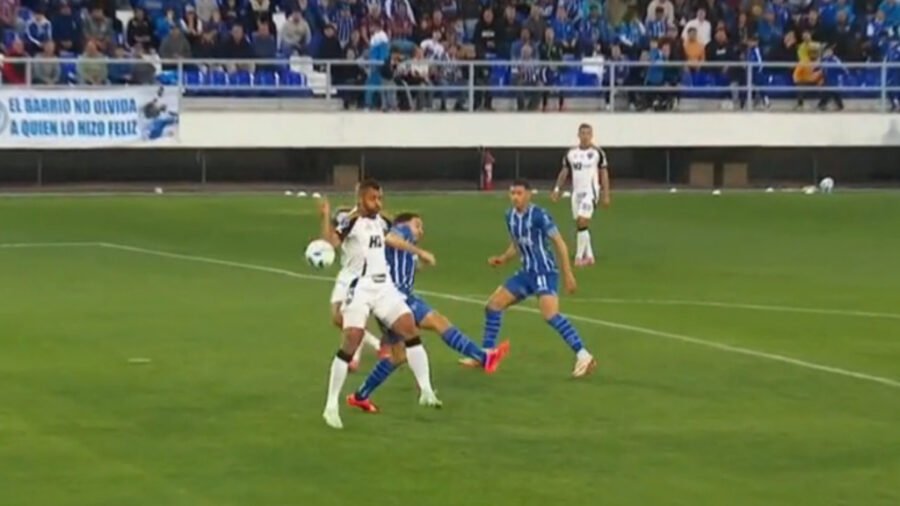 O duelo de volta entre Godoy Cruz e Atlético, pelas oitavas de final da Copa Sul-Americana, teve lance polêmico logo aos dois minutos na noite desta quinta-feira (21/8). Dentro da grande área alvinegra no Estádio Feliciano Gambarte, em Godoy Cruz, o zagueiro Vitor Hugo viu a bola bater em seu braço direito – o árbitro chileno Felipe González assinalou pênalti, mas reverteu a decisão após análise no VAR.