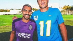 Nesta quarta-feira (3/9), às vésperas do jogo contra o Kansas City Chiefs, pela NFL, que será disputado no Brasil, o elenco do Los Angeles Chargers treinou no CT Dr. Joaquim Grava, do Corinthians. A equipe utilizou as instalações alvinegras para se preparar para a partida e conheceu alguns atletas do Timão.