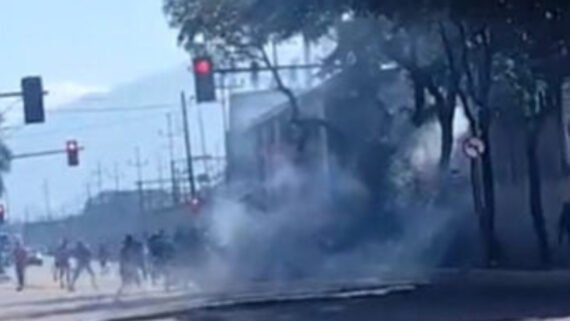 Da mesma forma, o Diário das Torcidas postou imagens de uma ação policial nas proximidades do Maracanã. Assim como ocorre no vídeo gravado em Mesquita, este também mostra fumaça em meio à confusão.