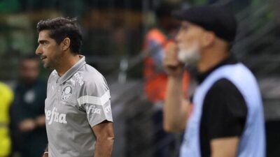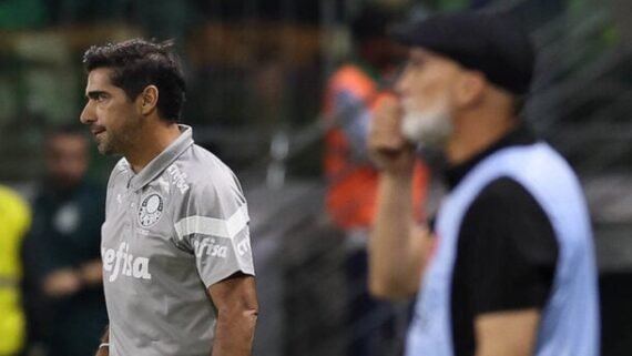 Abel Ferreira, do Palmeiras, presenteou o amigo Álvaro Pacheco, treinador do Vasco, com um vinho português. Essa foi a primeira vez que eles se enfrentaram como treinadores.