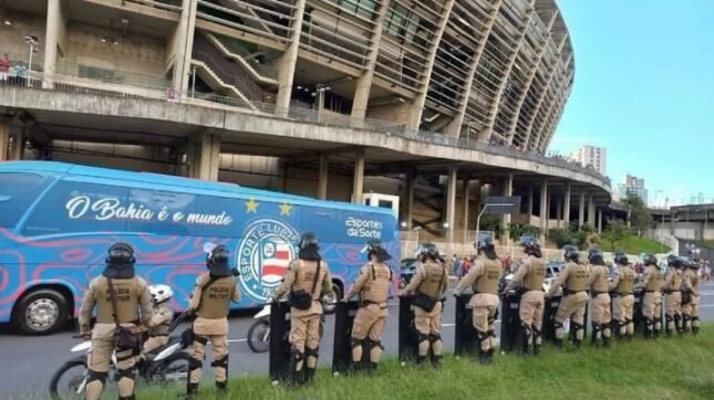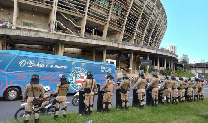A Polícia Militar da Bahia (PM-BA) organizou um superesquema de segurança para o jogo entre Bahia e Atlético, nesta quarta-feira (6/12), às 21h30, na Fonte Nova, em Salvador, pela última rodada do Campeonato Brasileiro.