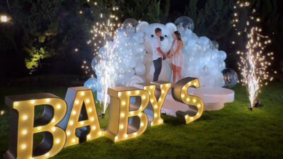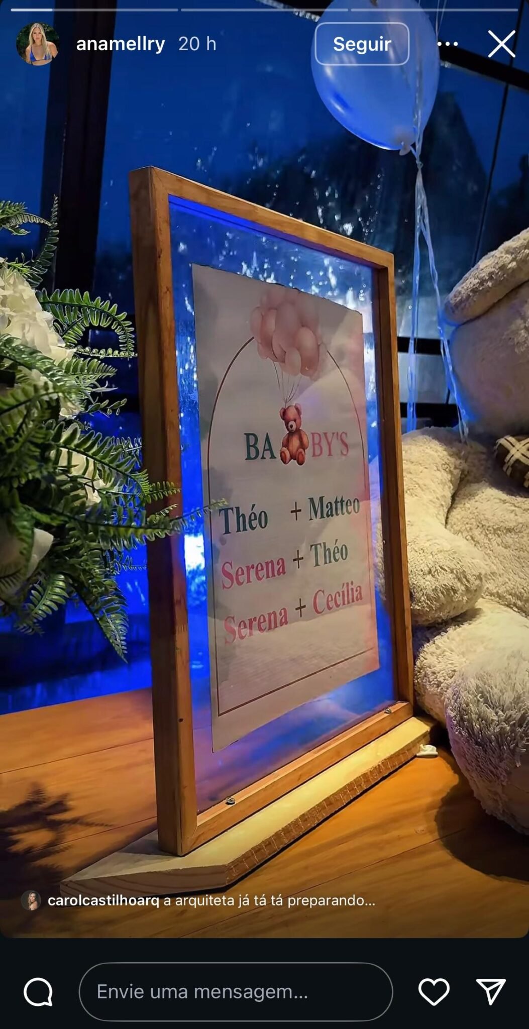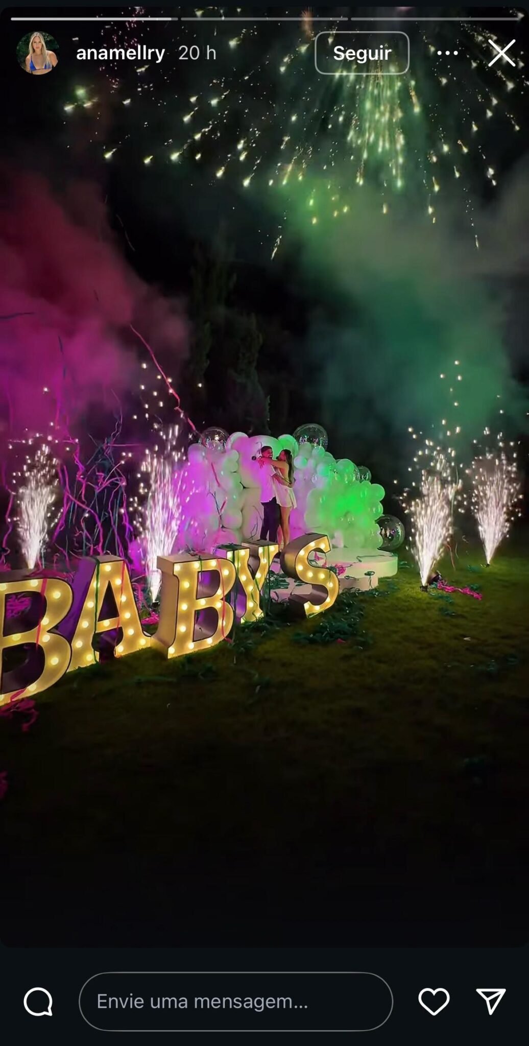 Nas redes sociais, Rubens compartilhou vídeo publicado pela namorada. Nos takes, é possível ver a festa que eles organizaram para comemorar a chegada das crianças e a descoberta do sexo.