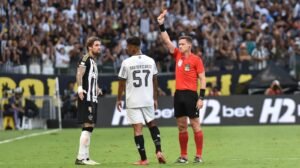 Em campo, árbitro Ramon Abatti Abel assinalou a infração e puniu o botafoguense com cartão amarelo. O VAR, comandado por Rodolpho Toski Marques, recomendou a revisão.