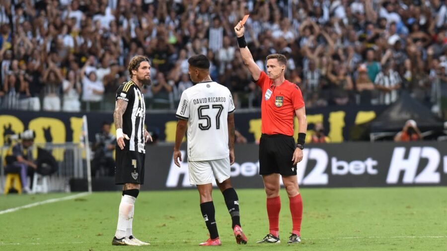 Ramon Abatti Abel reviu o lance no monitor e concordou com a mudança de cor do cartão para vermelho.