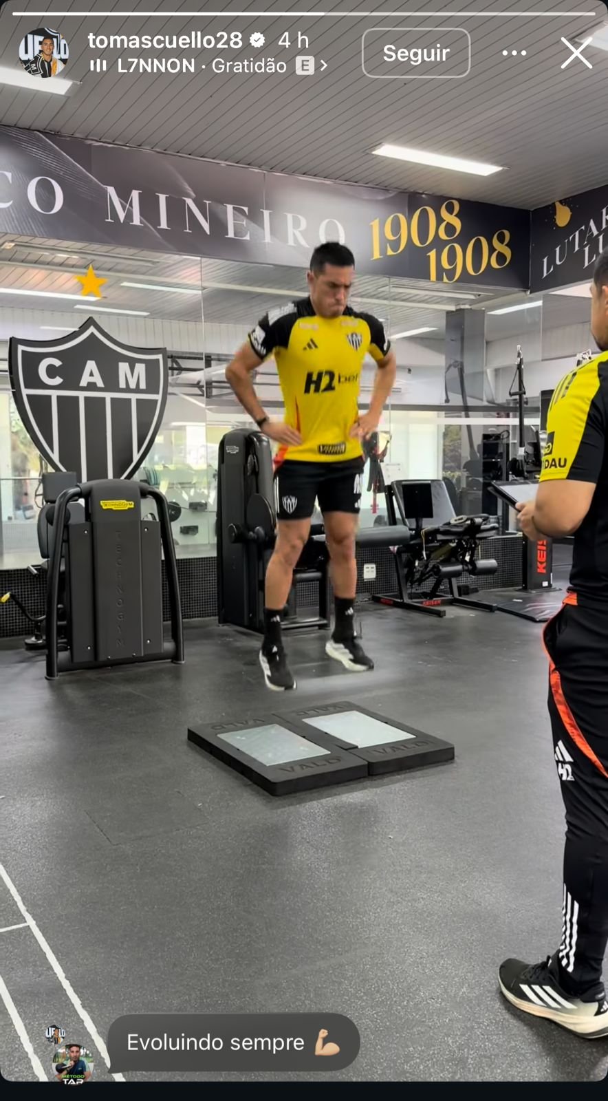O atacante Cuello, do Atlético, compartilhou nas redes sociais, neste sábado (15/11), parte do processo de recuperação após a grave lesão no tornozelo esquerdo. A evolução do jogador empolgou os torcedores do Galo, que pediram logo o retorno do atleta aos gramados.