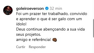 “Foi um prazer ter trabalhado, convivido e aprender o que é ser galo com um ídolo! Deus continue abençoando a sua vida seus projetos. Amigo e referência!”, escreveu Everson.