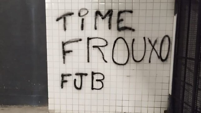 Os muros do estádio Nilton Santos foram pichados na madrugada deste sábado (25), na altura do Setor Oeste. Os pichadores protestaram contra a diretoria, contra o dono John Textor e também contra os atletas. As palavras de ordem foram escritas pela Fúria Jovem Botafogo, a maior organizada do clube.