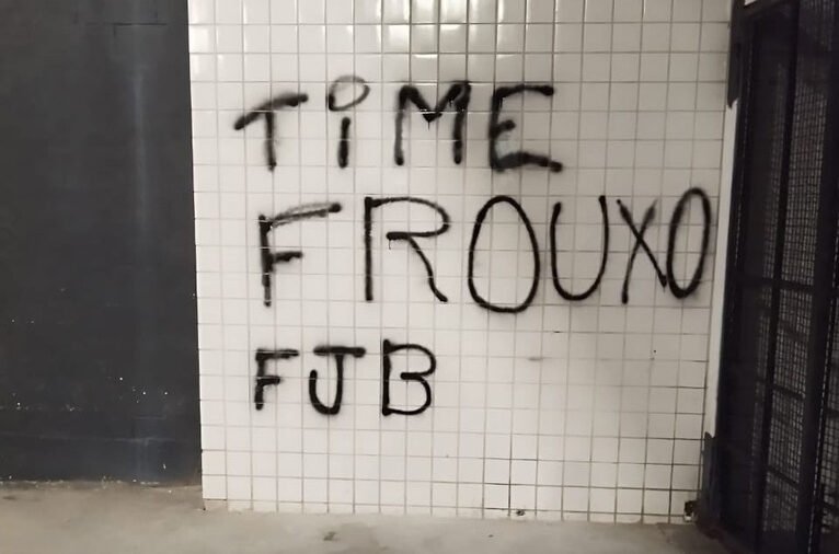 e “Time de covardes. Diretoria f***. Jogadores frouxos!”, diziam as pichações no Nilton Santos, fotografadas primeiramente pelo site “Fogão do Meu Coração”.
