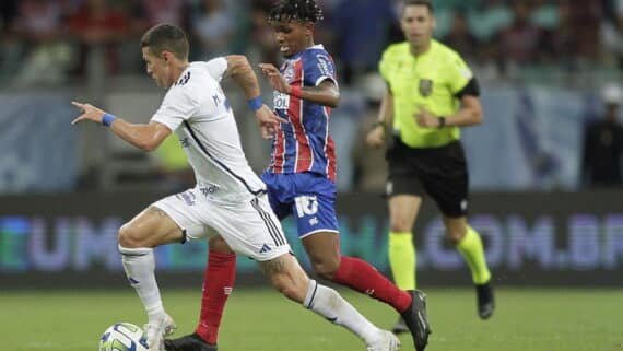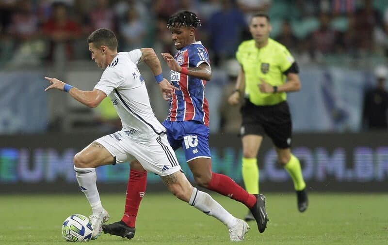 Três minutos depois, o juiz Rodrigo José Pereira anulou a marcação de um pênalti para os mineiros após checar o árbitro de vídeo e ver que o defensor do Bahia havia tocado na bola.