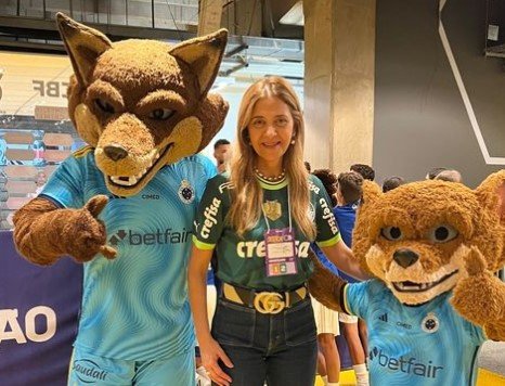 Na noite dessa quarta-feira (6/12), a presidente do Palmeiras posou para fotos ao lado das mascotes Raposão e Raposinho. A imagem foi publicada no Instagram de Leila Pereira.