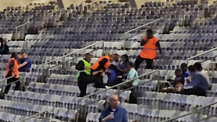 O cruzeirense correu por vários setores e foi parado no roxo superior enquanto tentava chegar ao amarelo superior, onde fica a Máfia Azul, principal torcida organizada do clube celeste.