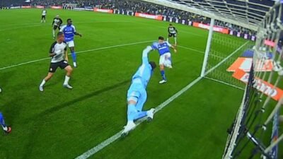 Aos 44 minutos do segundo tempo, o Corinthians realizou cobrança de escanteio, e a bola foi desviada pelo zagueiro Gustavo Henrique. Praticamente em cima da linha, Villalba afastou o gol do Timão. Veja abaixo: