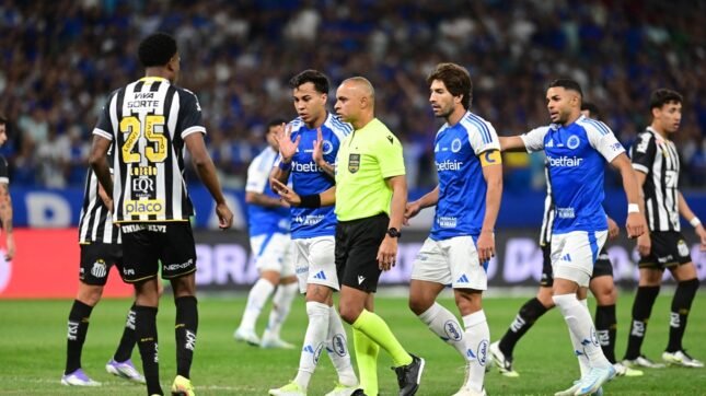 O Cruzeiro reclamou da atuação da arbitragem na derrota por 2 a 1 para o Santos neste domingo (10/8), no Mineirão, em Belo Horizonte, pela 19ª rodada do Campeonato Brasileiro. A marcação que mais irritou os donos da casa foi a anulação do gol do atacante Kaio Jorge, quando o jogo estava empatado por 1 a 1. Comentaristas analisaram a jogada.