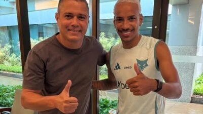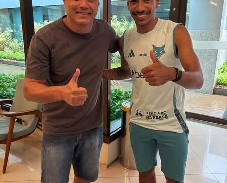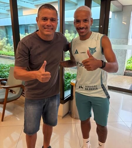 Ídolo de Bahia e Cruzeiro, o ex-centroavante Marcelo Ramos visitou a delegação celeste nesta segunda-feira (15/9), em um hotel em Salvador. O goleador de 52 anos foi recebido pelo vice-presidente Pedro Junio, que o presenteou com uma camisa do clube com o número 7.