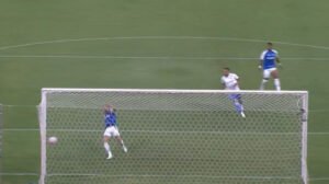 Logo no início da partida, em lance pelo lado esquerdo, Christian cruzou para a área e encontrou Gabigol em boa posição, livre de qualquer marcação, sem goleiro. O atacante, contudo, não conseguiu alcançar a bola e apenas raspou o pé direito na bola, batendo para fora.