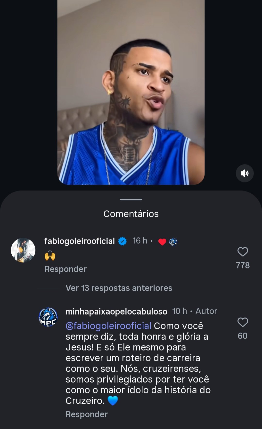 Uma página de torcedores repostou a publicação, e Fábio comentou com um emoji de oração, usado costumeirante como sinal de bênção ou súplica.
