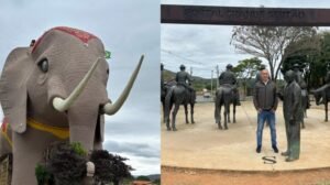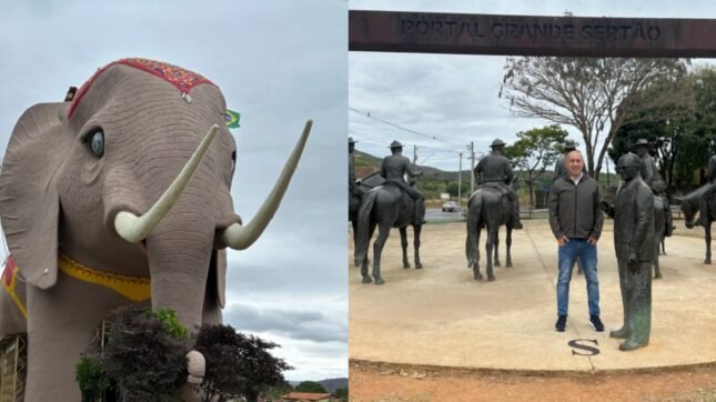 Jardim também tirou foto com a obra Portal Grande Sertão, que traz estátuas alusivas ao livro “Grande Sertão: Veredas”, de autoria de Guimarães Rosa. O renomado escritor mineiro nasceu em Cordisburgo e é a personalidade histórica mais conhecida do local.