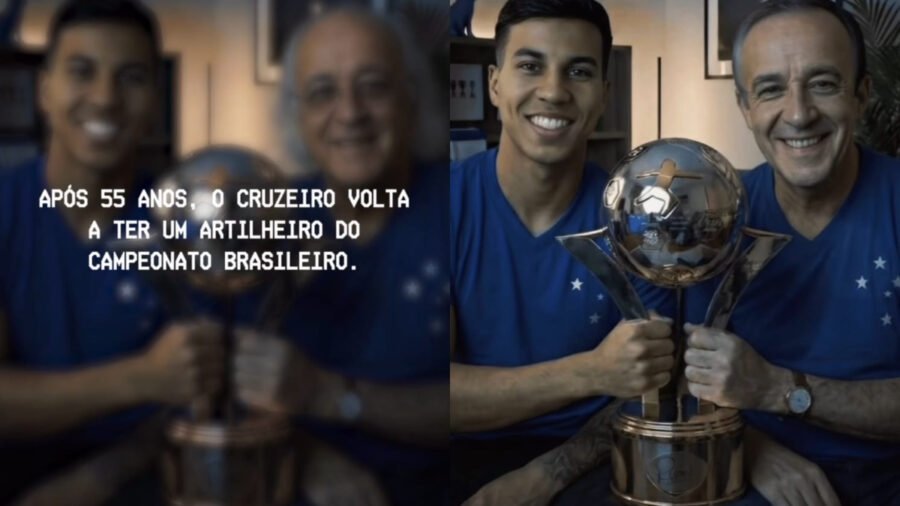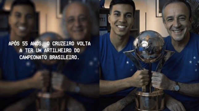 Em vídeo feito por inteligência artificial e publicado nas redes sociais, o atacante Kaio Jorge celebrou neste domingo (7/12) um grande momento de sua carreira. O astro do Cruzeiro foi o artilheiro do Campeonato Brasileiro de 2025, com 21 gols em 33 jogos.