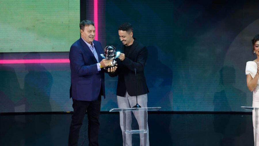 Camisa 10 do Cruzeiro, Matheus Pereira foi premiado como melhor meio-campista do Brasileirão, ao lado de Giorgian de Arrascaeta, do Flamengo. No palco, Pedrinho fez piada com Bap, como é chamado o dirigente do rubro-negro.
