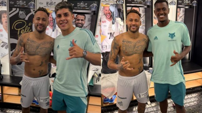 Jogadores da base do Cruzeiro registraram fotos com Neymar após duelo com Santos pela Série A do Campeonato Brasileiro