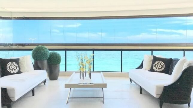 Localizado no condomínio Waterways, o apartamento avaliado em R$ 12 milhões conta com cobertura de 509 m², três quartos, quatro banheiros e piscina, além de vista para a praia da Barra.