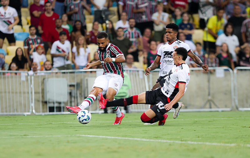 O Fluminense ficou no empate por 1 a 1 com o Vitória, neste domingo (20/4), no Maracanã, pela quinta rodada do Campeonato Brasileiro. O Tricolor abriu o placar no primeiro tempo, com Cano. Porém, o Leão da Barra chegou ao empate na etapa final, com Lucas Braga.