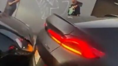 Um vídeo que circula nas redes sociais mostra o momento posterior à batida. Deyverson e David Luiz aparecem do lado de fora do carro.