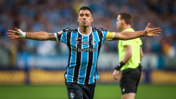 GRÊMIO: Luís Suárez, no primeiro minuto do segundo tempo