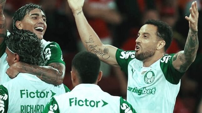 Gustavo Gómez lançou para Richard Ríos na direita. O colombiano venceu a disputa com Bernabei e cruzou na área, encontrando Facundo Torres, livre. O uruguaio bateu no canto e estufou a rede para colocar o Verdão na frente. Aos 23, o Alviverde quase fez o segundo. Vitor Roque saiu em contra-ataque, acionou Estêvão, que ajeitou a bola e mandou próximo à trave, com desvio.