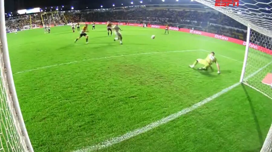 O lance ocorreu já nos acréscimos do segundo tempo, aos 50 minutos. Após cobrança de falta do lateral Zeca, o goleiro Kauã Moroso, do Tigre, rebateu a bola na pequena área. Dellatorre, que havia entrado no lugar de Gustavo Coutinho, aos 26 minutos do segundo tempo, simplesmente “furou” ao tentar finalizar de pé esquerdo.