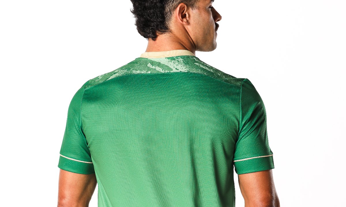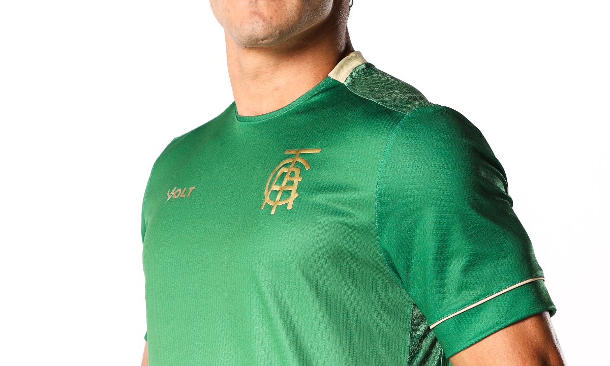 O América lançou, nesta sexta-feira (2/8), a sua 3ª camisa para a temporada 2024. O modelo assinado pela Volt Sport, fornecedora de material esportivo oficial do clube, ressalta o verde tradicional da equipe com diferentes tons, tanto ao longo do uniforme quanto na parte de trás e nas faixas laterais. O símbolo conta apenas com o monograma da instituição, em dourado, cor que também aparece em detalhes nas mangas e gola.