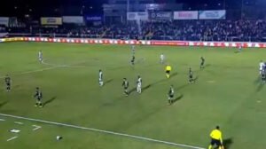 Na arquibancada, os torcedores gritaram “racista” e protestaram. A confusão se estendeu até mesmo no banco do Coelho, que estava bem próximo da torcida adversária. Um torcedor, inclusive, foi retirado pela Polícia Militar. Foram quase 15 minutos de paralisação da partida.