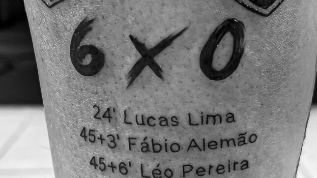 Um torcedor do CRB viralizou nas redes sociais ao tatuar a goleada sobre o Vitória, por 6 a 0, pela 27ª rodada da Série B do Campeonato Brasileiro. As equipes se enfrentaram no estádio Rei Pelé, em Maceió (AL), no último domingo (10/9).