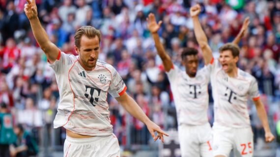 Com o título do Campeonato Alemão já garantido, o Bayern de Munique bateu o Borussia Monchengladbach, neste sábado (10/5), por 2 a 0. A partida, pela penúltima rodada da competição, ocorreu na Allianz Arena. Harry Kane e Olise marcaram os gols.