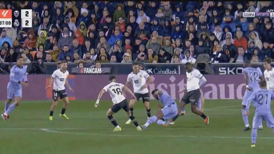 Um lance chocou quem acompanhava e até os atletas da partida entre Real Madrid e Valência neste sábado (2/3), pelo Campeonato Espanhol.
