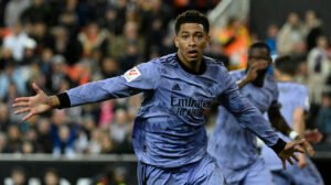 O meio-campista inglês Jude Bellingham, do Real Madrid, foi suspenso por dois jogos no Campeonato Espanhol por ter sido expulso com cartão vermelho direto no empate com o Valencia em 2 a 2 no último sábado (2/3), no Mestalla, pela 27ª rodada do torneio. Além disso, atleta e clube terão que pagar multas pelo ocorrido.