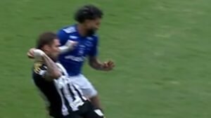 O lance ocorreu ainda no primeiro tempo, precisamente no minuto 27. Em uma jogada na lateral direita, o zagueiro do Atlético tocou a bola, e Gabigol o agrediu com uma cotovelada.