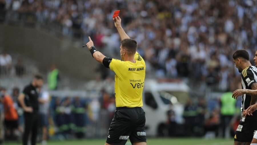 O árbitro Vinícius Gomes do Amaral (CBF-MG) não titubeou, paralisou o jogo e expulsou Barros. O volante contestou a decisão e aguardou o VAR, comandado por Wagner Reway. A arbitragem de vídeo, contudo, não recomendou revisão – o que manteve o vermelho.