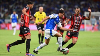 Nos acréscimos, o Cruzeiro diminuiu o placar. Aos 49′, Cauan Baptistella cobrou escanteio curto, mais baixo, e Kauã Prates marcou de cabeça: 2 a 1.