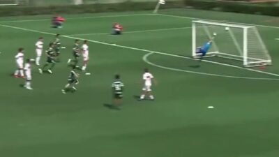 A idade dos jogadores do Sub-12 de São Paulo e Palmeiras é baixa, mas eles já jogam como “gente grande”. Durante clássico entre as duas equipes pela partida de volta das semifinais do Campeonato Paulista da categoria, em Cotia, lance impressionante viralizou nas redes sociais – tanto pelo chute do meio-campo de Gustavo, do alviverde, quanto pelo “milagre” de Felipe Ávila, goleiro tricolor.