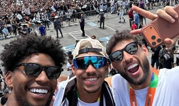Por outro lado, Matheuzinho, Hugo Souza e Yuri Alberto quiseram sentir o calor da torcida mais de perto e desceram do trio elétrico. A atitude, contudo, gerou uma pequena confusão no local, que logo se dispersou.
