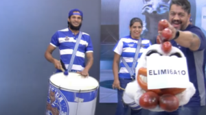 Logo no início do programa, Hugão apareceu segurando a cabeça da fantasia da mascote Galo Doido e começou a entoar uma paródia da música “Fácil”, da banda Jota Quest.