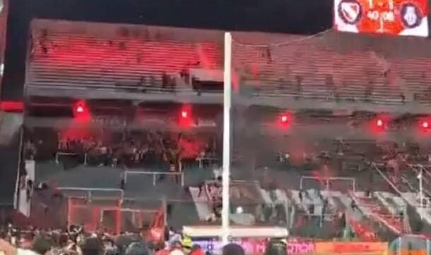 Imagens mostraram torcedores dos dois times atirando pedras e outros objetos em direção aos rivais. Chilenos chegaram a colocar fogo nas arquibancadas do estádio Libertadores de América e uma bomba foi lançada na direção dos argentinos.
