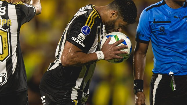 De pênalti, o atacante Hulk marcou o gol da vitória do Atlético por 1 a 0 sobre o Atlético Bucaramanga nesta quinta-feira (17/7), no Estádio Américo Montanini, na Colômbia, pela ida dos playoffs da Copa Sul-Americana.