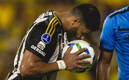 Contudo, mesmo com um jogador a menos, o Galo conseguiu o gol. Em um raro lance ofensivo, o meia Igor Gomes invadiu a área e foi derrubado. Pênalti. Na cobrança, Hulk bate firme de canhota, no canto esquerdo do goleiro, e garantiu o 1 a 0.