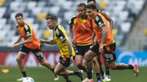O Atlético perdeu o lateral-direito Saravia de última hora para o confronto com o Atlético-Bucaramanga-COL. As equipes se enfrentam nesta quinta-feira (24/7), na Arena MRV, pela volta dos playoffs da Copa Sul-Americana.